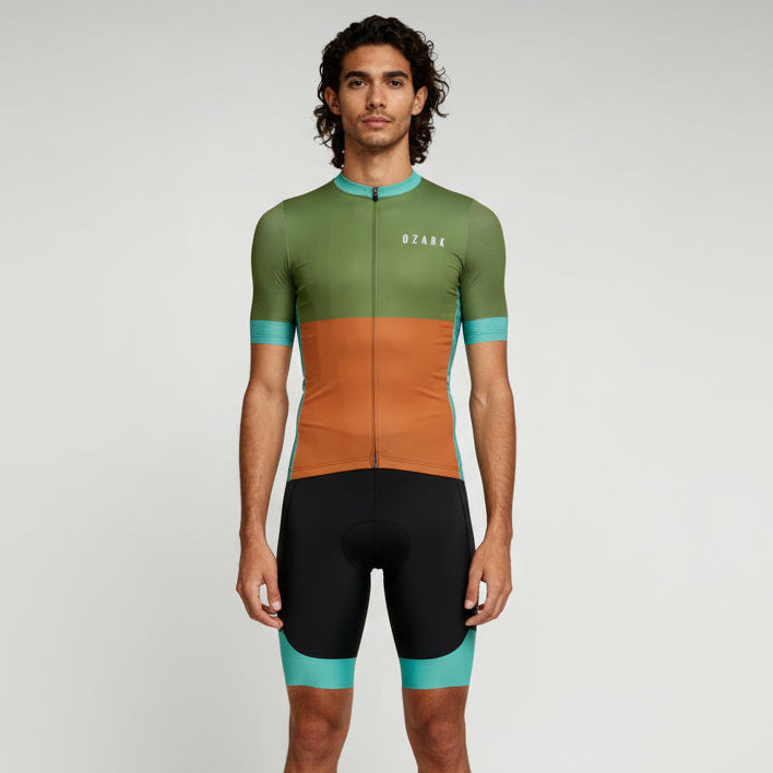- Ozark Cycling Green Core Jersey - Sublimated graphics from top to bottom for one-piece look and design.